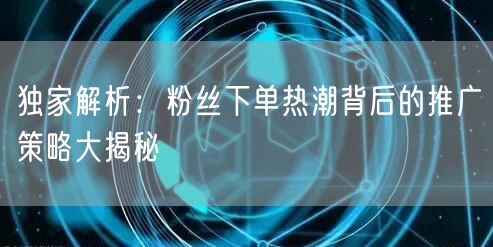 粉丝下单热潮背后的推广策略是一个值得深入研究的话题。通过深度解析背后的策略、消费心理和市场趋势,我们可以更好地了解市场动态,为企业制定更有效的营销策略提供借鉴。本文旨在为读者提供一个全面的视角,以洞察市场的未来发展方向。